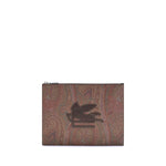 The Arnica Pouch by Etro is an elegant and distinctive accessory, crafted in the iconic Paisley jacquard fabric that celebrates the fashion house’s heritage. Embellished with the ETRO logo and the Pegasus embroidered on the front, it is completed with a zip closure and gold-finish metal accessories, for a touch of timeless refinement.
