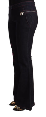 Exte Black Cotton Mid Waist Cotton Flared Jeans