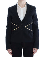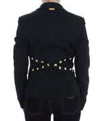 Exte Black Cotton Stretch Gold Studded Blazer Jacket