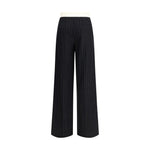 The sartorial high-waisted pinstripe wool-blend Trousers by Forte_Forte, designed to follow the body with natural ease. The gleaming waistband creates a refined contrast and fastens with a concealed double hook, while the elastic insert at the back ensures discreet comfort. A piece to be paired with airy blouses and deconstructed jackets, embodying essential and contemporary elegance.