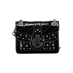 shoulder bag with chain, 2 compartments, 1 inside pocket, zip and snap closure, contrasting details, logo