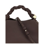 Ganni’s Bou small grained Handbag stands out for its elegant grainy texture and refined details. It features a tone-on-tone GANNI Butterfly logo and an embossed logo on the back, accompanied by metal nuts engraved with logo and butterfly. The braided top knot handle lends a handcrafted touch, while the adjustable and removable shoulder strap offers versatility. The interior magnetic closure ensures security, with a single functional compartment.