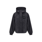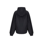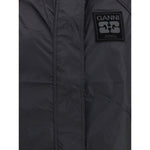 The Recycled Nylon Jacket by Ganni channels a sporty yet contemporary spirit. Its short hooded design combines practicality with urban character, while dropped shoulders and a concealed closure bring a relaxed touch. Side welt pockets complete the clean silhouette, defined by a straight hem and a subtle tonal logo, making it a piece that blends sustainability with modern aesthetics.