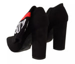 GCDS Black Suede Logo Socks Block Heel Ankle Boots Shoes