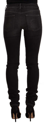 GF Ferre Black Washed Mid Waist Cotton Skinny Slim Fit Jeans
