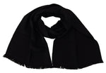 GF Ferre Black Wool Neck Wrap Shawl Fringes Scarf