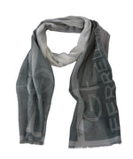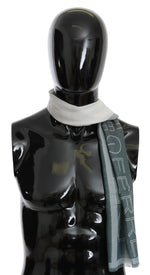 GF Ferre Gray Wool Viscose Foulard Patterned Branded Scarf