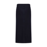 Cotton Midi Skirt by Giorgio Armani, front zipper and button closure, waistband loops, two side welt pockets, front slit, monochrome pattern, regular fit.