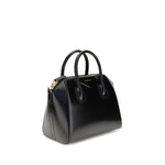 Givenchy’s Antigona small Handbag combines elegance and practicality in a refined design. It features a zipper closure, leather handles and an adjustable and removable shoulder strap for different modes of use. The front features a pentagonal appliqué with the GIVENCHY signature embossed in gold, while metallic details with a gold finish add a touch of luxury. Inside, a main compartment is flanked by two flat pockets and a zipper pocket for optimal organization.