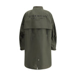 Cotton parka Jacket by Givenchy with a double-slider front zipper closure and button flap. Features two welt flap pockets on the front, adjustable button cuffs and an adjustable drawstring waist for a customized fit. Contrasting iconic monogram embellishes the design, while the adjustable drawstring hem and back slit complete the garment. Oversized model ideal for a modern, functional look.