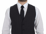 Dolce & Gabbana Gray Striped Wool Logo Vest Gilet Weste