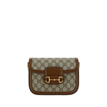 The 1955 Mini Horsebit Shoulder Bag by Gucci combines retro elegance with the house’s iconic details. Crafted with the distinctive repeating GG pattern, it features a slotted flap closure that defines its classic profile. The adjustable and removable shoulder strap, embellished with the distinctive striped Web stripe, allows for versatility in wearing. Inside it offers a compact yet functional compartment, complete with a handy slit pocket for organizing essentials with order and style.