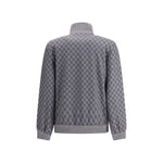 Gucci Sweatshirt with front zipper closure and ribbed high neck. The design is completed with ribbed cuffs and hem, as well as two practical side welt pockets. The iconic GG motif is repeated all-over, giving the garment a distinctive and recognizable character. A perfect mix of sporty style and sophistication typical of the house.