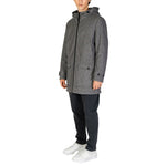 The HAMAKI-HO GBI1577H men’s coat is the perfect choice for those seeking both style and practicality during the cold season. Made of 100% polyester, this coat ensures thermal insulation and weather resistance, providing maximum comfort even on the coldest days. The modern design features a clean line with an adjustable hood, front zip closure, and practical patch pockets with flap and button, ideal for storing small items or warming your hands. Adjustable buttoned cuffs add a functional touch and allow for a customized fit. A versatile coat that complements both casual and refined looks, perfect for the dynamic man who values elegance.