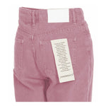 Hinnominate pink jeans with raw cut bottom, button and zip closure, five pockets, white leather patch on the back.