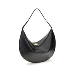 The Ovalo Bag by Jacquemus is an elegant large hobo bag crafted from smooth leather, featuring a slim shoulder strap for easy carrying. The flap with a large engraved snap button ensures secure closure, while the interior includes a leather zip pocket and slots for credit cards. The embossed logo and fully cotton-lined interior complete this refined and versatile accessory.