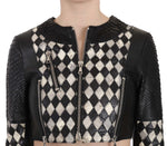 John Richmond Black White Leather Short Cropped Biker Jacket Coat