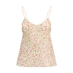 The Madeline Magnolia Top by Kristina Ti embodies a fresh, refined femininity with a contemporary appeal. Crafted from floral-print ramie, it features a V-neckline and adjustable thin shoulder straps that enhance the silhouette with lightness. Geometric cut-outs enriched with passementerie inserts add a refined decorative detail, giving the top a delicate yet urban elegance.