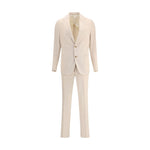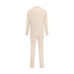The single-breasted suit by Lardini in corduroy consists of a blazer featuring a classic notch lapel, button closure, and patch pockets. The straight-leg trousers are designed with a front zip and button fastening, belt loops at the waist, two side welt pockets, and two back welt pockets with button closure. A refined ensemble that combines elegance with a rich texture.