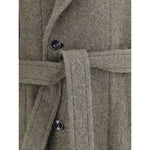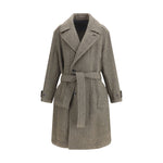 The wool and alpaca Coat by Lemaire embodies the brand’s understated sophistication. Crafted from a fine wool and alpaca blend, it features notched lapels, a front button closure, and a self-tie belt that cinches the waist for a naturally elegant silhouette. The design includes two front patch pockets, adjustable cuffs with straps, and a central back vent. Unlined, it offers a refined lightness that enhances its modern and effortless appeal.