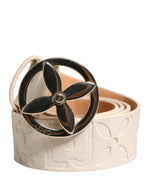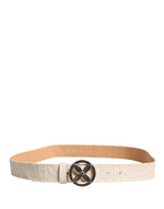 Liu Jo Beige Leather Wide Waist Silver Metal Buckle Waist Women Belt