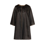 The Coat by LouLou de Saison embodies essential elegance with its soft Faux Fur and clean silhouette. The round neckline enhances its minimalist line, while the 3/4 sleeves and concealed front fastening lend the piece a sophisticated, contemporary feel. A straight hem completes the design, balancing comfort with timeless style.
