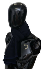 M Missoni Dark Blue Wool Unisex Neck Wrap Fringes Logo Scarf