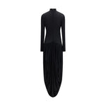 Magda Butrym’s long turtleneck Dress is a sophisticated and feminine piece, featuring long sleeves and a wrap silhouette. The low waist blends harmoniously with the draped skirt, creating an elegant and flowing effect, perfect for special occasions or refined looks.