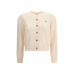 Maison Kitsuné’s Baby Fox Cardigan is a versatile garment with a clean, contemporary style. It features a front button closure and the iconic fox stitched on the front, a distinctive detail that adds a touch of personality to the essential design.