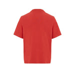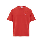 Coral Red Cotton T-Shirt with Maison Kitsuné Embroidery.