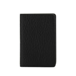 Leather Card Holder by Maison Margiela, billfold design, iconic contrasting brand stitching on back, interior card slots, grained leather design, iconic brand signature pressure-stamped on inside.