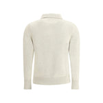 Cotton Nola Sweater by Marant Etoile featuring classic collar, button-front closure, contrasting iconic brand logo on front, ribbed cuffs, ribbed hem, mélange pattern, regular fit.