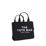 Cotton The small Tote Handbag by Marc Jacobs, two rigid tubular top handles, top zipper closure, single interior pocket, adjustable and removable flat shoulder strap, contrasting jacquard print iconic brand monogram on front, contrasting patch with iconic brand monogram applied on back.
