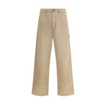The Margiela Cotton Trousers blend elegance with signature details. The fabric features tonal stripe embroidery across the entire surface and the iconic contrasting stitch on the back for a distinctive touch. Belt loops accommodate a belt, while a zip, hidden hook, and single visible button ensure practical closure. Five classic front pockets and two back patch pockets complete the design, with a raw-cut hem adding a modern finish