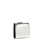 Metallic leather Bi-Fold Wallet by Margiela is crafted from calfskin in shades of silver and black, with a metallic finish and elegant texture. The compact bi-fold design includes a zippered compartment, interior card slots, and dedicated bill slots. The discreet internal logo complements the brand’s minimalist and distinctive aesthetic.