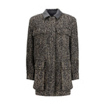 The Max Mara Wool tweed Jacket offers a contemporary take on the safari style, blending structure with understated luxury. Crafted in wool tweed, it features a straight silhouette and four patch pockets with flaps on the front, enhancing its utilitarian inspiration. The leather shirt collar adds a refined contrast, while the concealed zip fastening ensures a clean finish. Shirt-style cuffs with press buttons and side vents at the back complete the design. Fully lined for comfort, this piece strikes the balance between function and elegance.