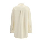 The oversized Riber wool Shirt by Sportmax is crafted from pure double-faced wool, standing out for its soft structure and generous fit. The classic shirt collar, visible button closure, and chest patch pocket lend it a relaxed yet refined appeal. Long sleeves and a rounded hem complete a sophisticated yet effortless piece, perfect for layering or wearing as a lightweight outer shirt.