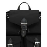 The Aren Drawstring Backpack by MCM combines elegance and practicality in a modern, sustainable design. Made of ECONYL® regenerated nylon, it features adjustable leather shoulder straps and a leather top handle for comfortable carry. Magnetic snap closure with leather drawstring ensures a secure and stylish closure. Metal buckle detail with Bavarian diamonds adds a touch of sophistication. Front flap pockets with magnetic closure, along with an interior pouch pocket, offer ample capacity and organization. A practical, sophisticated and environmentally conscious accessory.