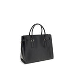 The Michael Kors leather Shoulder Bag combines elegance and practicality, complete with a protective textile bag to keep it safe from dust. The design is enhanced by metal studs on the bottom, protecting the base of the bag from wear and damage. Equipped with detachable and adjustable handles and shoulder strap, it offers versatility in carrying. Inside, a zippered compartment and several pockets, including one with a zipper, provide organization and functionality. All embellished with a decorative applique that adds a distinctive touch to the model.