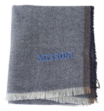 Missoni Gray Striped Wool Unisex Neck Wrap Fringes Scarf