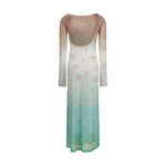 The long viscose lamé cover-up Dress by Missoni with a dégradé spider web pattern is a striking and elegant piece, designed to enhance beach looks with sophistication. Made from a viscose lamé blend with a raschel weave, it features long sleeves, spider web lace embellished with embroidery, and an open back and slit design that adds sensuality and movement to the silhouette.