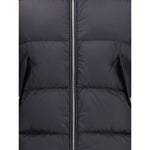 The Blas Short Down Jacket from Moncler x EE72 by Edward Enninful combines innovation and style in a clean, contemporary design. Crafted from Longue Saison with nylon laqué lining, it features a warm yet lightweight padding that ensures comfort and protection. Functional details such as adjustable side vents, internal suspenders, and a drawstring hem enhance its versatility. Finished with snap-button pockets and the iconic logo patch.