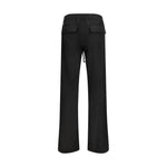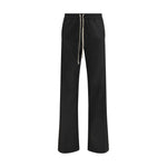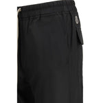 The nylon Pants Moncler + Rick Owens offer the perfect blend of practicality and style. Featuring an elastic waistband and drawstring, they ensure a comfortable and adjustable fit. The straight leg lends a clean, modern look, while the two side welt pockets and back patch pockets offer storage for small items. The iconic logo patch sewn onto the back adds a distinctive detail, making these trousers a versatile piece with a minimalist yet sophisticated style.