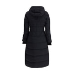 The Jocada Parka in Nyluxe combines protection and style in a sleek, full-length silhouette designed for both elegance and practicality. Crafted from Nyluxe—a soft yet durable fabric that resists wind and water—it ensures comfort and performance throughout the season. A removable, adjustable hood and side snap vents allow adaptability to changing weather. The down-filled collar provides added warmth, while the two-way zipper with snap placket and zip pockets enhance functionality. A signature logo patch completes the look with a distinctive touch.