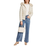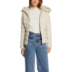 The Morgan De Toi 242-GKIDIA women’s puffer jacket is a stylish and comfortable choice for the cold season. Made of 100% polyurethane, this jacket provides optimal protection against wind and cold while maintaining a feminine and modern silhouette. The quilted design, combined with a hood featuring a faux fur trim, adds a sophisticated and cozy touch, perfect for both casual and more refined looks. The front zip closure, zippered side pockets, and regular fit ensure practicality and comfort throughout the day. Ideal for facing winter days with elegance and functionality.