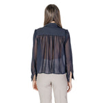 The Morgan De Toi 242-CPLIA women’s long-sleeved shirt is an elegant and versatile piece, perfect for adding a sophisticated touch to any outfit. Crafted from a lightweight fabric made of 70% polyester and 30% recycled polyester, this shirt offers a fluid fit and a pleasant feel on the skin. The front features refined pleated detailing, giving the garment movement and character, while the sheer fabric adds a feminine touch. The jewel button closure and wide cuffs enhance its classy look, making this shirt ideal for both office wear and special occasions. Pair it with tailored trousers or skirts for a stylish and sustainable choice.