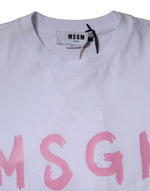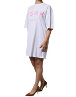 MSGM White Logo Print Cotton T-shirt Short Sleeves Mini Dress