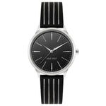 Type of mechanism: QUARTZ.Display: ANALOGICAL.Material Of Case: METAL.Colour Of Case: GREY.Material Of Bracelet: PLASTIC.Colour Of Bracelet: MULTICOLORED.Dial Colour:BLACK.Glass type: MINERAL.Clousure: BUTTERFLY.Water resistence: NO.Diameter dial: 36MM.Special Functions: