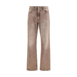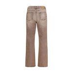 The Carlson Cut Clay Breeze Wash Jeans by Our Legacy deliver a strong silhouette inspired by lived-in denim. Defined by a faded, naturally worn wash, they feature a high waist with a straight hip line and extended leg length, finished with a subtle boot cut. A five-pocket construction with steel rivets and an embossed Our Legacy patch reinforces an authentic, functional aesthetic, completed by a zip fly. A piece designed to express denim with confidence and contemporary precision.