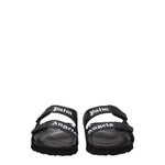 The product with MPN PMIH005LEA0011001 and code F77119 leather in black is a slippers and clogs designed by Palm Angels. It has features like front logo.